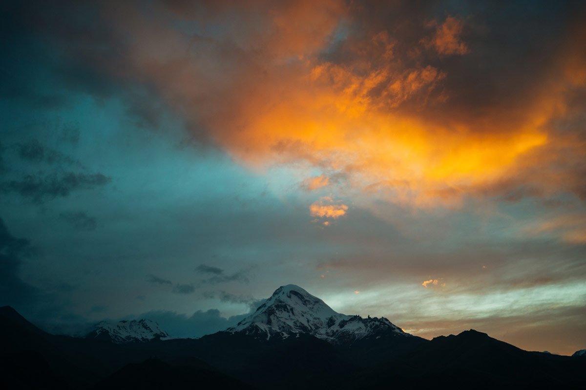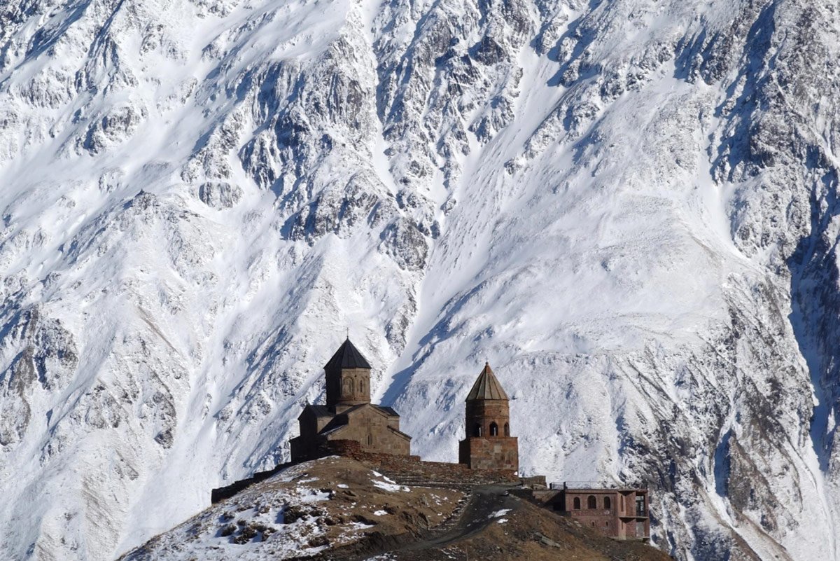 О подножья Казбека вьется опасный и крутой серпантин Военно-грузинской дороги, которая связывала Азию с Европой на протяжении столетий. По ней когда-то прошел Атилла (вождь гуннов с 434 по 453 год, объединивший под своей властью варварские племена от Рейна до Северного Причерноморья), а позднее ее использовали как часть Великого шелкового пути. Это самый протяженный торговый маршрут Грузии, он соединяет Тбилиси с Россией.
